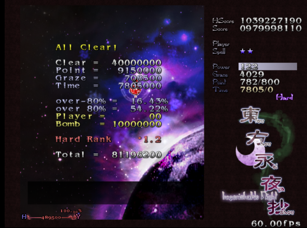 Bempis's score history for Touhou Eiyashou ~ Imperishable Night - Hard