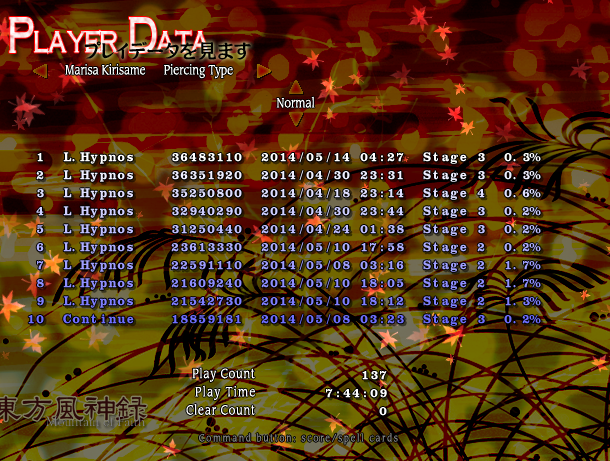 LordHypnos's score history for Touhou Fuujinroku ~ Mountain of Faith - Normal