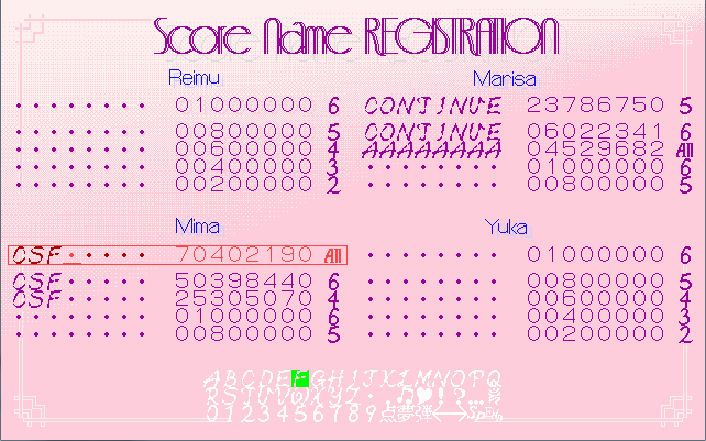 cstarflare's score history for Touhou Kaikidan ~ Mystic Square - Normal