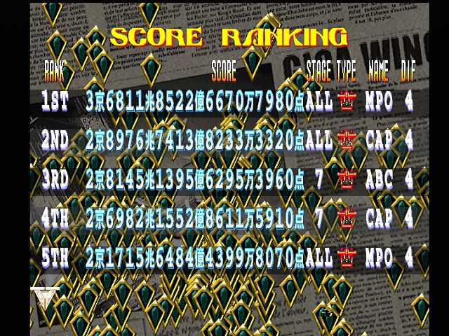 | DC | Stork RF | ALL★ | 28,976,741,382,333,320  | https://shmups.system11.org/viewtopic.php?p=1300203#p1300203 | 2018-02-04 |
