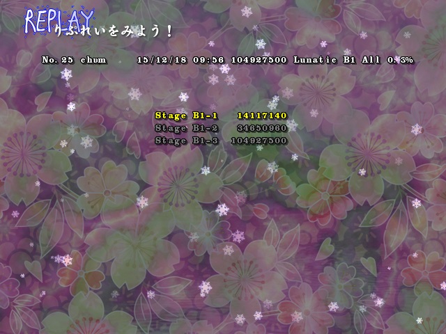 | PC | Cirno | Clear★ | 104,927,500  | stage 1 and 2 will be almost unbeatable... | 2015-12-21 |
