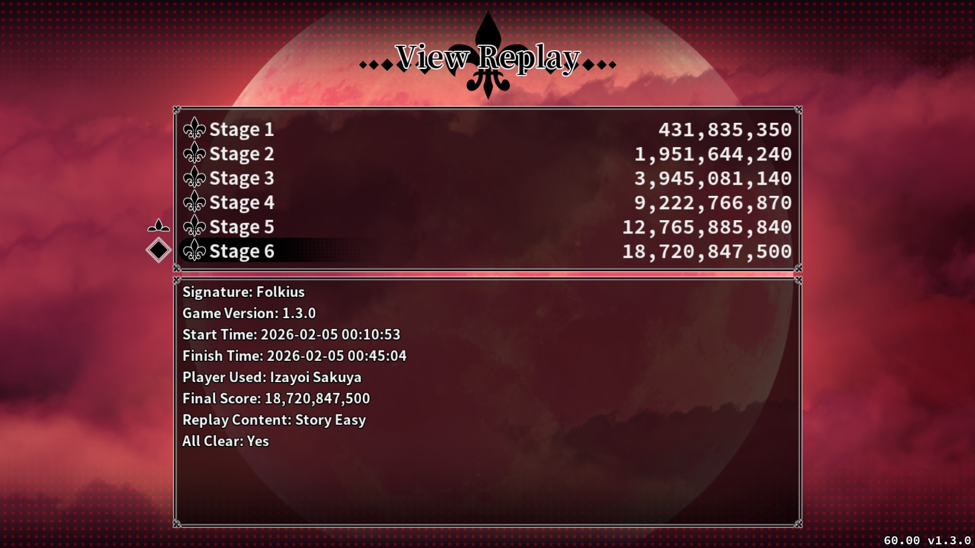Folkius's score history for Dongfang qixiayuan ~ Blue Devil in the Belvedere - Easy