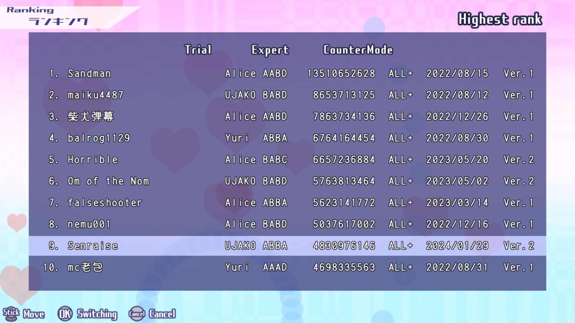 Senraise's score history for Like Dreamer - Trial Tour - Expert Counter