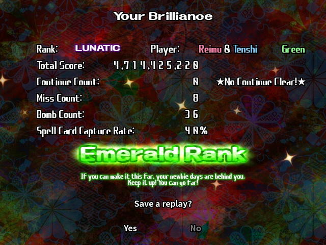 Senraise's score history for Touhou Houtenkyou ~ Treasure Castle Labyrinth - Lunatic Route A