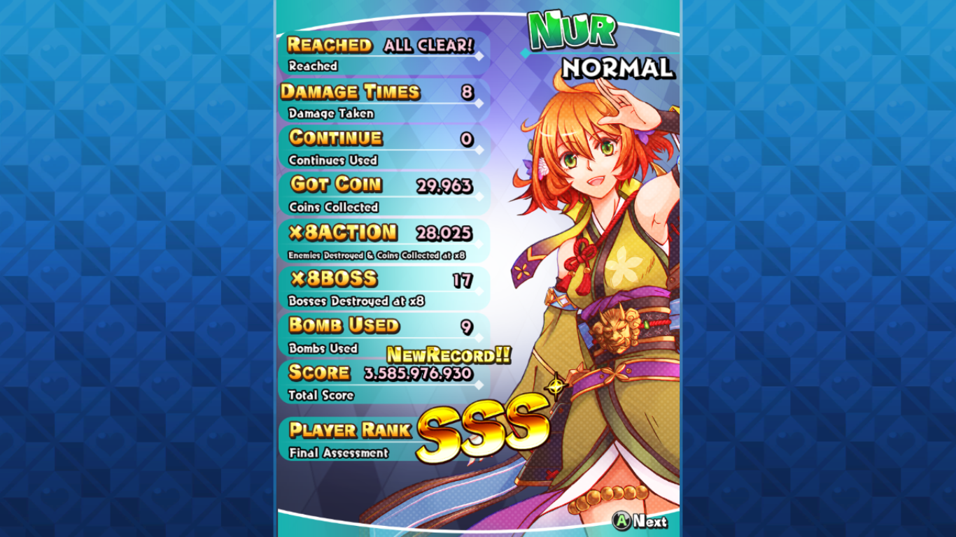 Nur | Player | Platform | Stage | Score | Comment | Entered Date | iconoclast | PC | ALL★ | 6,371,114,770 ![]() [edit][dead] | Normal Mode World Record; highest score available for any character. Note: not played on Switch, but PC. | unknown | Mero | PS4 | ALL★ | 6,033,881,600 ![]() [edit][dead] |   | 2020-10-26 | marus | PS4 | ALL★ | 4,268,995,100 ![]() [dead] | This game's been sitting on my shelf for a few years now and I finally decided to try it lol. It's pretty funny. I'll probably go for a hard mode run at some point. | 2024-09-22 | Prinny | PC | ALL★ | 4,085,625,690 ![]() [dead] | Reached 4b. | unknown | Prinny | PC | ALL★ | 3,823,361,610 ![]() [obsolete[dead] |   | unknown | Prinny | PC | ALL★ | 3,585,976,930 ![]() [obsolete[dead] |   | unknown | Prinny | PC | ALL★ | 3,191,362,240 ![]() [obsolete[dead] |   | unknown |