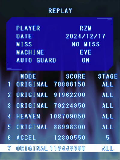Blue Despair | Player | Platform | Stage | Score | Comment | Entered Date | sykalol | PC | Clear★ | 64,837,050 ![]() [dead] | who gave the ship a cocaine? | 2025-01-19 | niviv | PC | Clear★ | 61,798,050 ![]() [dead] |   | unknown |