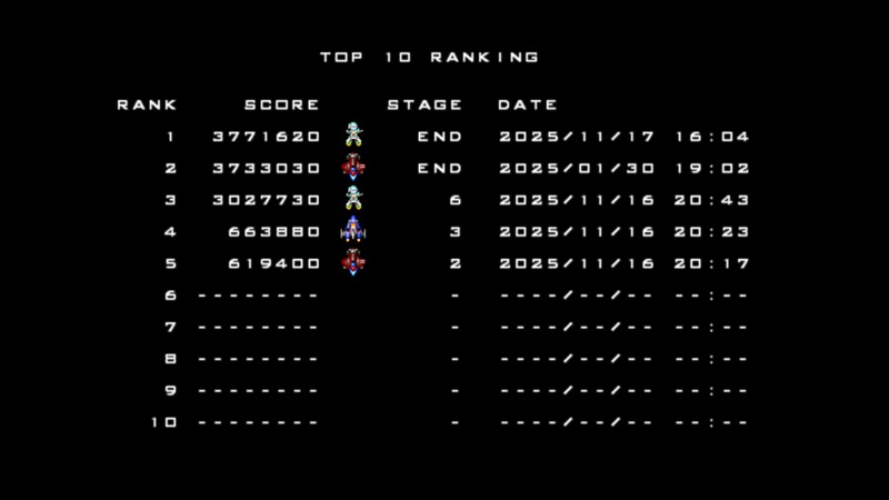 | PAN- | Radiant Silvergun - Arcade Mode Default | 10,207,650  | 2025-10-31 |