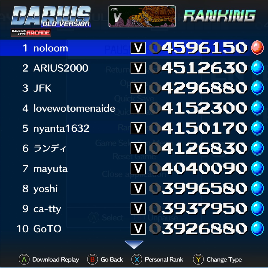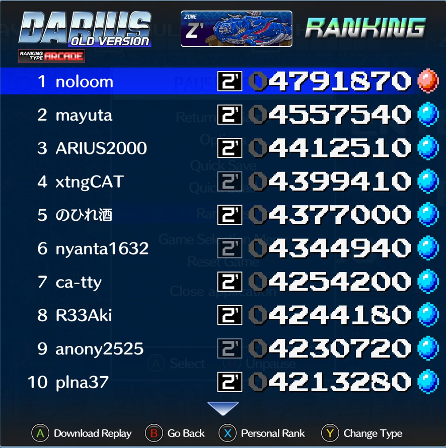 Darius Arcade - Route V - Silver Hawk | 4,596,150 | 2026-01-30 | Darius Arcade - Route Z - Silver Hawk | 4,791,870 | 2026-01-29 | Deathsmiles Mega Black ... Arcade - Sakura | 1,282,979,645 | 2025-09-14 | Deathsmiles Mega Black ... Arcade - Sakura | 9,146,682,543 | 2025-09-14 |