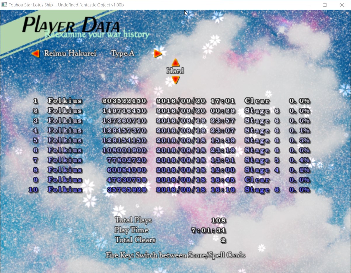 | ★ | Reimu A | 1,155,754,990 | | | | ★ | Marisa A | 1,240,885,960 | 5/6 | | |