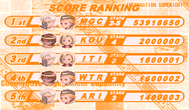 | 11 | NTSC-J | Arcade | Bolt/Nail | 2-1★ | 16,540,480 | 8 year old score that will never be improved | 2012-06-11 | |||||||||