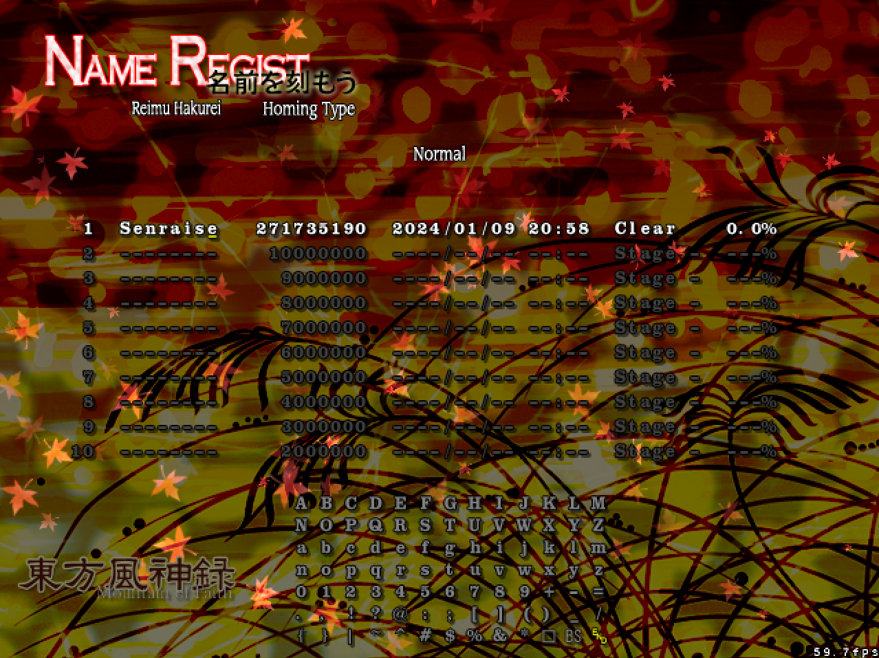 Senraise's score history for Touhou Fuujinroku ~ Mountain of Faith - Normal