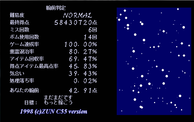 Prinny's score history for Touhou Kaikidan ~ Mystic Square - Normal