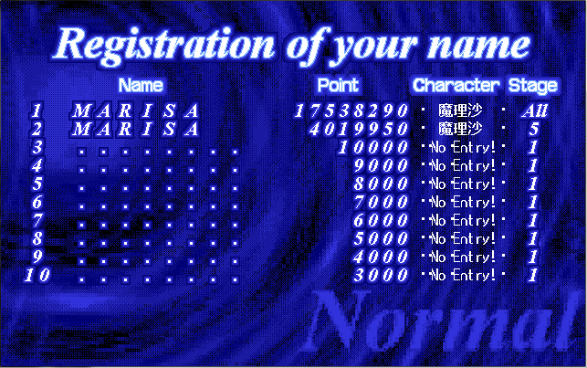 Prinny's score history for Touhou Yumejikuu ~ Phantasmagoria of Dim. Dream - Normal