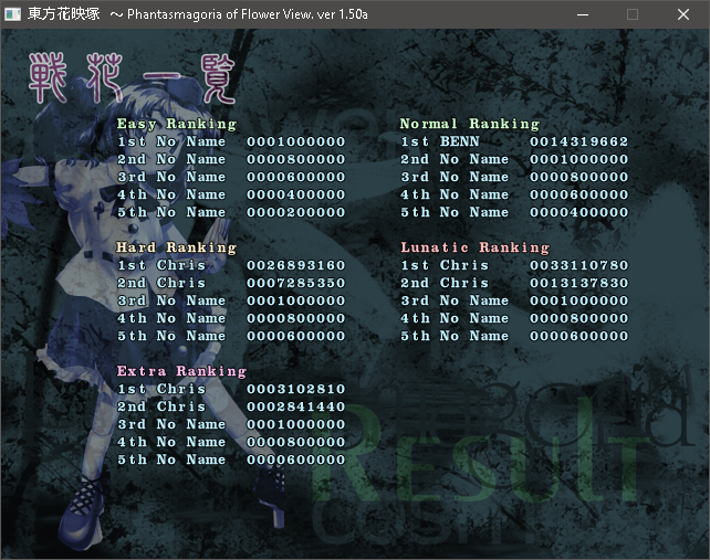 Chris's score history for Touhou Kaeitzuka ~ Phantasmagoria of Flower View - Lunatic