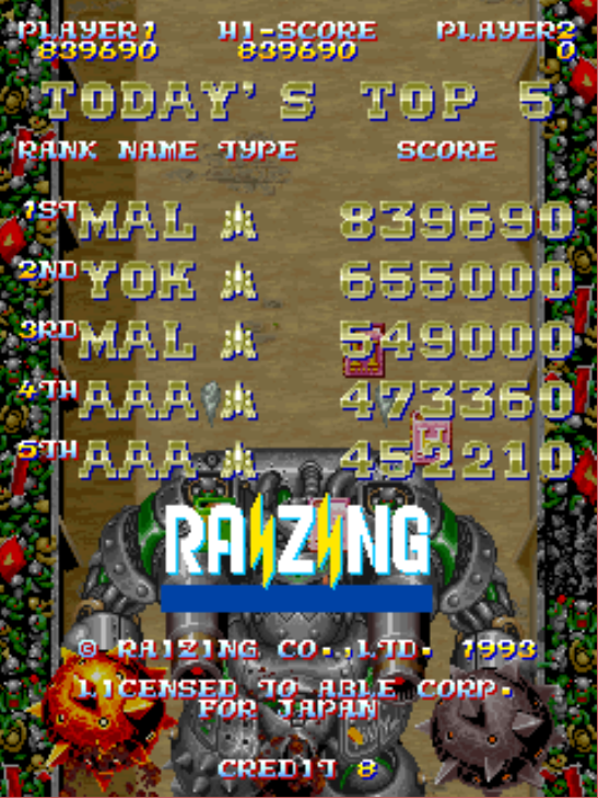 Triskadex's score history for Mahou Daisakusen - Arcade - JP
