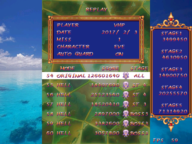 PC | Nanathy | ALL★ | Wait Off | 68,346,120  | Wait off, Guard on. My 1st 1cc of Eden's Aegis version 1.11 Original mode with the wait off, & autoguard on! | 2015-05-28 |