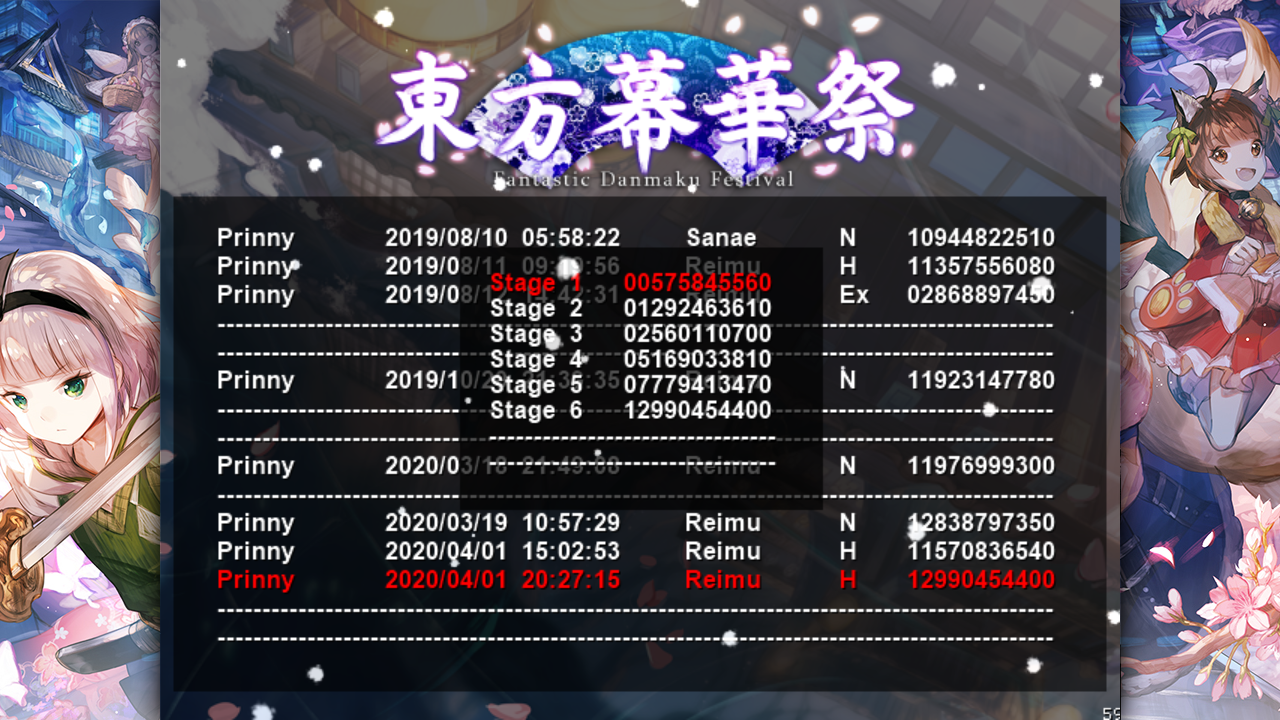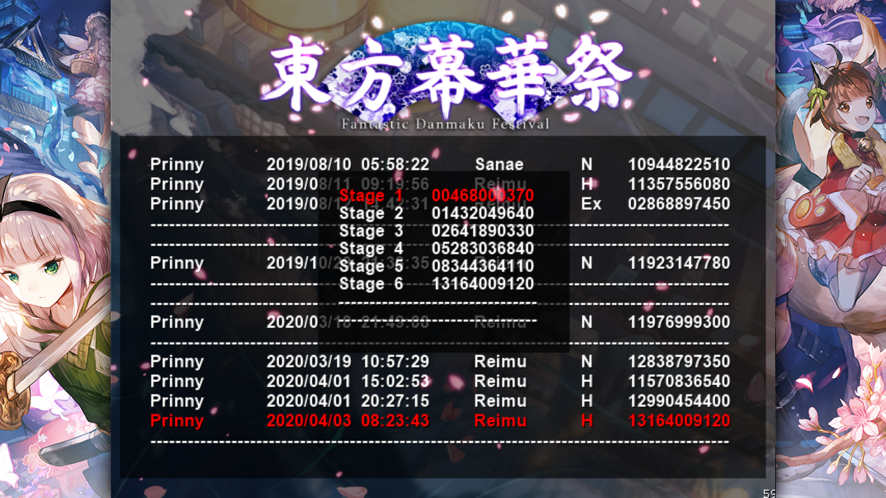 Prinny's score history for Touhou Makuka Sai ~ Fantastic Danmaku Festival Part II - Hard