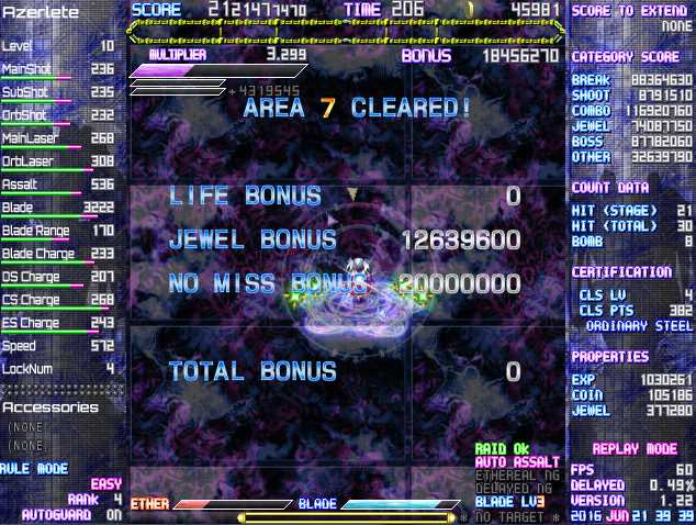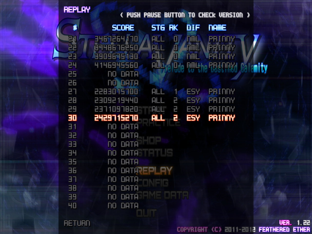 Revolgear Zero Standard - Advanced (1 Loop) - Turret | 5,121,450★  | 2026-03-01 | Crimzon Clover Arrange - Original - Type I | 6,064,423,797,550★  | 2026-02-04 | Ketsui ~Kizuna Jigoku T... Deathtiny - Tiger Schwert | 181,735,324★  | 2026-02-04 | Karous Normal Mode - Default | 1,024,721,740★  | 2026-02-04 | Battle Traverse Normal - Neider | 35,618,984★  | 2025-12-29 | Touhou Makuka Sai ~ Fan... Normal - Reimu | 12,299,797,890★  | 2025-10-04 | Crimzon Clover Arcade - Time Attack - Type I | 70,527,370★  | 2025-08-15 | Darius Gaiden Arcade - Route Z Prime - Silver Hawk | 6,004,000★  | 2025-06-30 | Darius Gaiden Arcade - Route Z - Silver Hawk | 6,783,770★  | 2025-06-30 | Darius Gaiden Arcade - Route V Prime - Silver Hawk | 7,655,830★  | 2025-06-30 | Darius Gaiden Arcade - Route X - Silver Hawk | 6,225,950★  | 2025-06-30 | Darius Gaiden Arcade - Route W - Silver Hawk | 6,480,150★  | 2025-06-30 | Darius Gaiden Arcade - Route Y - Silver Hawk | 8,053,360★  | 2025-06-30 | Darius Gaiden Arcade - Route V - Silver Hawk | 8,264,590★  | 2025-06-30 | Stella Vanity -Prelude ... Rule(Strict) - Type-C - Normal - Azerlete | 4,298,408,820★  | 2025-02-05 | Stella Vanity -Prelude ... Rule(Strict) - Type-C - Normal - Azerlete | 3,815,837,840★  | 2025-01-26 | Sonic Wings 3 Arcade - Blazers | 1,290,200★  | 2025-01-20 | Double Spoiler ~ Touhou... Aya - Aya | 32,870,290★  | 2024-08-17 | Battle Garegga Premium - Wild Snail | 19,502,530★  | 2023-09-19 | Battle Garegga Premium - Wild Snail | 9,818,850★  | 2023-08-27 | Darius Arcade New Ver. - Route V - Silver Hawk | 3,391,710★  | 2023-05-21 | TWilight refrAIN Sequel - Mikahashi Sisters | 79,091,280★  | 2023-02-26 | Giga Wing Arcade - Stuck | 25,627,065,917,650  | 2023-01-16 | Rolling Gunner Casual - RF-42RX STORK | 185,548,140★  | 2022-12-29 | Battle Garegga Arcade - Wild Snail | 6,234,500  | 2022-10-06 | G.Darius Arcade - Route Lambda - Silver Hawk | 20,793,100★  | 2022-04-16 | Eden's Aegis Heaven - Nanathy | 144,955,910★  | 2022-02-19 | Stella Vanity -Prelude ... Rule(Strict) - Type-C - Normal - Azerlete | 3,171,339,990★  | 2022-02-02 | Stella Vanity -Prelude ... Rule(Strict) - Type-C - Easy - Azerlete | 2,719,366,060★  | 2022-02-02 | Stella Vanity -Prelude ... Rule(Strict) - Type-C - Easy - Azerlete | 2,537,209,810★  | 2022-01-07 | Stella Vanity -Prelude ... Rule(Strict) - Type-C - Easy - Azerlete | 2,429,715,270★  | 2022-01-07 | Stella Vanity -Prelude ... Rule(Strict) - Type-C - Easy - Azerlete | 2,283,015,700★  | 2022-01-02 | Shikigami no Shiro II Normal - Sayo Type 1 | 3,611,825,450★  | 2021-12-15 | Shikigami no Shiro II Normal - Kohtaro Type 2 | 4,850,403,560★  | 2021-12-11 | Shikigami no Shiro II Normal - Kohtaro Type 2 | 4,494,585,480★  | 2021-12-09 | Raiden IV Original Arcade - Original - Fighting Thunder ME-2 | 44,918,950★  | 2021-12-03 | Sisters Royale Normal - Nur | 4,085,625,690★  | 2021-11-17 | Sisters Royale Normal - Nur | 3,823,361,610★  | 2021-11-10 | Sisters Royale Normal - Nur | 3,585,976,930★  | 2021-10-31 | Danmaku Unlimited 3 Spirit - Medium - B/B | 3,208,812,910★  | 2021-10-20 | Eden's Aegis Original - Nanathy | 230,609,250★  | 2021-09-29 | Eden's Aegis Original - Nanathy | 226,459,640★  | 2021-09-25 | Eden's Aegis Original - Nanathy | 222,782,460★  | 2021-09-24 | Stella Vanity -Prelude ... Rule(Strict) - Type-S - Normal - Azerlete | 4,146,945,560★  | 2021-09-10 | Leiria -Stargazer- Hard - A Type | 2,045,637,770★  | 2021-08-24 | HellSinker Full Sequence Order - Spirit - Fossilmaiden | 52,085★  | 2021-08-13 | Natsuki Chronicles Arcade - Normal - Default | 32,981,665★  | 2021-07-05 | Natsuki Chronicles Arcade - Easy - Default | 18,060,396★  | 2021-07-05 | Leiria -Stargazer- Normal - A Type | 658,769,640★  | 2021-06-10 | Leiria -Stargazer- Normal - A Type | 597,512,350★  | 2021-06-09 | Stella Vanity -Prelude ... Rule(Strict) - Type-S - Easy - Azerlete | 3,413,958,190★  | 2021-05-22 | Stella Vanity -Prelude ... Rule(Strict) - Type-S - Easy - Azerlete | 3,053,941,410★  | 2021-05-21 | Stella Vanity -Prelude ... Rule(Strict) - Type-S - Easy - Azerlete | 3,013,778,660★  | 2021-05-19 | Stella Vanity -Prelude ... Rule(Strict) - Type-S - Normal - Azerlete | 3,729,501,760★  | 2021-05-14 | Stella Vanity -Prelude ... Rule(Strict) - Type-S - Easy - Azerlete | 2,576,174,230★  | 2021-05-08 | Magical Singular Day -a... Moderate - Type-B | 512,485,789,440★  | 2021-03-28 | Stella Vanity -Prelude ... Rule(Strict) - Type-S - Normal - Azerlete | 3,360,200,100★  | 2021-03-28 | Sisters Royale Normal - Nur | 3,191,362,240★  | 2021-02-10 | Sisters Royale Normal - Sonay | 2,723,496,010★  | 2021-02-01 | Stella Vanity -Prelude ... Rule(Strict) - Type-C - Arcade - Azerlete | 1,825,293,240★  | 2021-01-20 | Sisters Royale Normal - Nur | 2,452,103,860★  | 2020-12-03 | Stella Vanity -Prelude ... Rule(Strict) - Type-S - Normal - Azerlete | 2,804,306,250★  | 2020-12-03 | Neko Navy Hard - Eugene | 2,279,396,480★  | 2020-10-29 | Neko Navy Easy - Mugi | 1,516,343,320★  | 2020-10-20 | Touhou Makuka Sai ~ Fan... Hard - Sanae | 2,242,038,510★  | 2020-09-11 | Flame Zapper Kotsujin Normal - Default | 12,009,040★  | 2020-09-05 | Touhou Fuujinroku ~ Mou... Normal - Reimu B | 777,409,860★  | 2020-08-11 | Touhou Yumejikuu ~ Phan... Normal - Ellen | 43,299,280★  | 2020-07-30 | Psyvariar -Medium Unit- Arcade - Default | 16,009,710★  | 2020-06-22 | Stella Vanity -Prelude ... Rule(Strict) - Type-C - Hard - Azerlete | 1,521,715,920★  | 2020-06-15 | Stella Vanity -Prelude ... Rule(Strict) - Type-S - Easy - Azerlete | 2,248,613,870★  | 2020-06-05 | Stella Vanity -Prelude ... Rule(Strict) - Type-C - Hard - Azerlete | 1,333,590,760★  | 2020-06-02 | Touhou Makuka Sai ~ Fan... Hard - Reimu | 14,056,792,410★  | 2020-04-14 | Touhou Yumejikuu ~ Phan... Normal - Rikako | 33,145,790★  | 2020-04-09 | Touhou Yumejikuu ~ Phan... Normal - Kotohime | 42,149,200★  | 2020