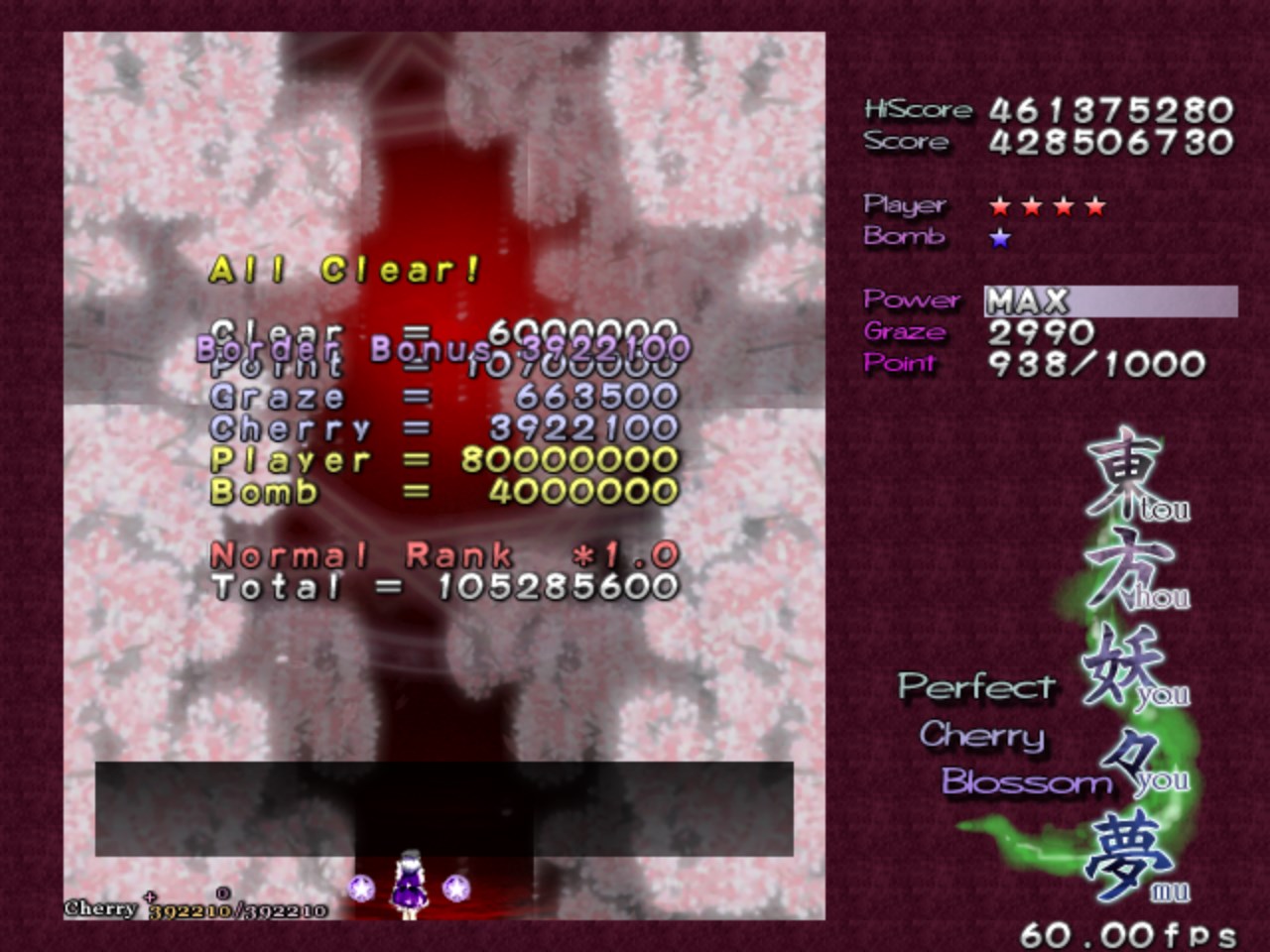Touhou Youyoumu ~ Perfe... Normal - Sakuya A | 428,506,730 | 2025-08-06 | Touhou Koumakyou ~ The ... Extra - Reimu B | 93,517,350 | 2025-06-30 | Touhou Youyoumu ~ Perfe... Extra - Sakuya A | 444,787,550 | 2025-06-30 | Touhou Chireiden ~ Subt... Normal - Reimu A | 156,483,610 | 2025-05-24 | Touhou Youyoumu ~ Perfe... Phantasm - Sakuya B | 427,448,030 | 2025-05-12 | Touhou Youyoumu ~ Perfe... Extra - Sakuya B | 144,435,670 | 2025-05-08 |