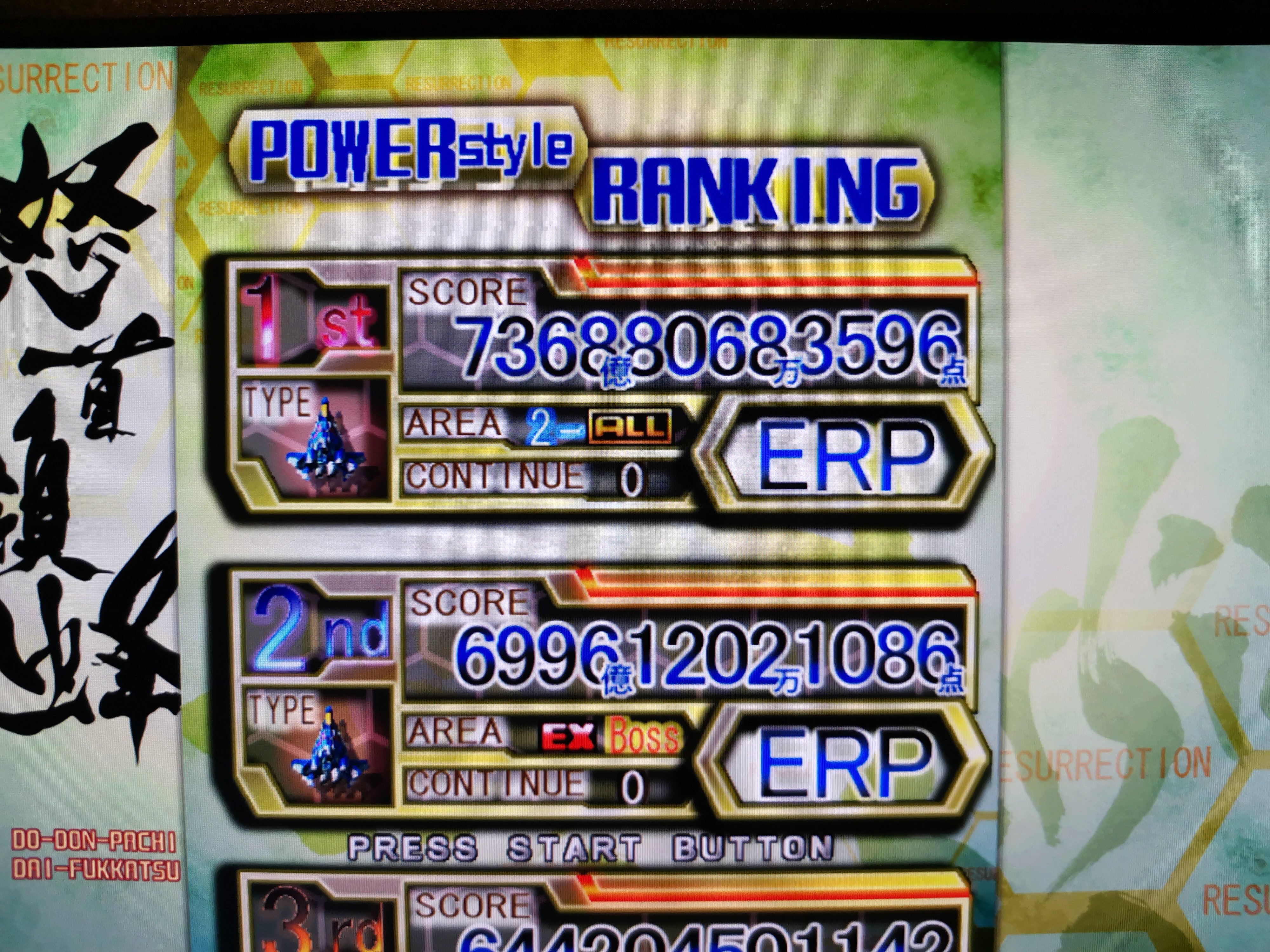 Seisou Kouki Strania Side Vower - Expert - Default | 17,277,360 |  | Espgaluda II Arcade - Ageha | 838,515,910 |  | G.Darius Arcade - Route Omicron - Silver Hawk | 49,596,810 |  | G.Darius Arcade - Route Xi - Silver Hawk | 30,647,960 |  | G.Darius Arcade - Route Nu - Silver Hawk | 34,937,640 |  | G.Darius Arcade - Route Mu - Silver Hawk | 31,311,640 |  | G.Darius Arcade - Route Lambda - Silver Hawk | 28,954,940 |  | Dodonpachi Daifukkatsu ... Arcade - Ura Loop - C Power | 669,971,271,991 |  | Dodonpachi Daifukkatsu ... Arcade - C Power | 736,880,683,596 |  | Darius Gaiden Extra - All Stages - Silver Hawk | 32,403,610 |  | Darius Gaiden Arcade - Route V - Silver Hawk | 12,383,740 |  | ZeroRanger Normal - Green Orange - Type B | 1,376,482 |  | Raiden Fighters 2: Oper... Arcade Mode - Arcade - Fairy | 112,766,670 |  | Raiden IV Original Arcade - Original - Fighting Thunder ME-2 | 64,698,660 |  | Mushihimesama Futari Ve... Maniac - Normal Reco | 810,491,881 |  | Dodonpachi Arcade Mode - C Shot | 380,744,100 |  | Dodonpachi Daifukkatsu ... Strong Style - B Type *Obsoleted run | 872,137,702,794 |  | Dodonpachi Daifukkatsu ... Strong Style - B Type | 1,103,731,750,585 |  | Strikers 1945 Arcade - Bf-109 | 1,543,200 |  | Raiden Fighters Arcade Mode - Arcade - Judge Spear Slave | 51,029,100 |  | Dodonpachi Arcade Mode - C Shot *Obsoleted run | 355,745,520 |  | Ketsui ~Kizuna Jigoku T... Arcade - Tiger Schwert | 267,237,122 |  | Dodonpachi Daifukkatsu ... Arcade - Ura Loop - C Power | 699,612,021,086 |  | Guxt Score Attack - Default | 18,530 |  | Espgaluda Arcade - Ageha | 56,078,920 |  | V-V Arcade - NA-00 | 32,151,610 |  | Touhou Eiyashou ~ Imper... Extra - Reimu & Yukari | 2,103,479,200 |  | Touhou Eiyashou ~ Imper... Easy - Reimu & Yukari | 2,150,691,620 |  | Touhou Youyoumu ~ Perfe... Normal - Reimu B | 1,412,565,920 |  | Touhou Youyoumu ~ Perfe... Normal - Reimu B *Obsoleted run | 1,246,376,880 |  | Touhou Youyoumu ~ Perfe... Extra - Reimu A | 1,042,937,040 |  | 1944: The Loop Master Arcade - P-38 Lightning | 20,001,820 |  | Dodonpachi Arcade Mode - C Shot *Obsoleted run | 254,708,360 |  | Dodonpachi Daifukkatsu ... Arcade - C Power *Obsoleted run | 240,344,031,746 |  | Dodonpachi Daifukkatsu ... Arcade - Ura Loop - C Strong | 231,085,247,504 |  | Dodonpachi Daioujou Bla... Arcade (2 Round) - A Exy | 927,314,430 |  |
