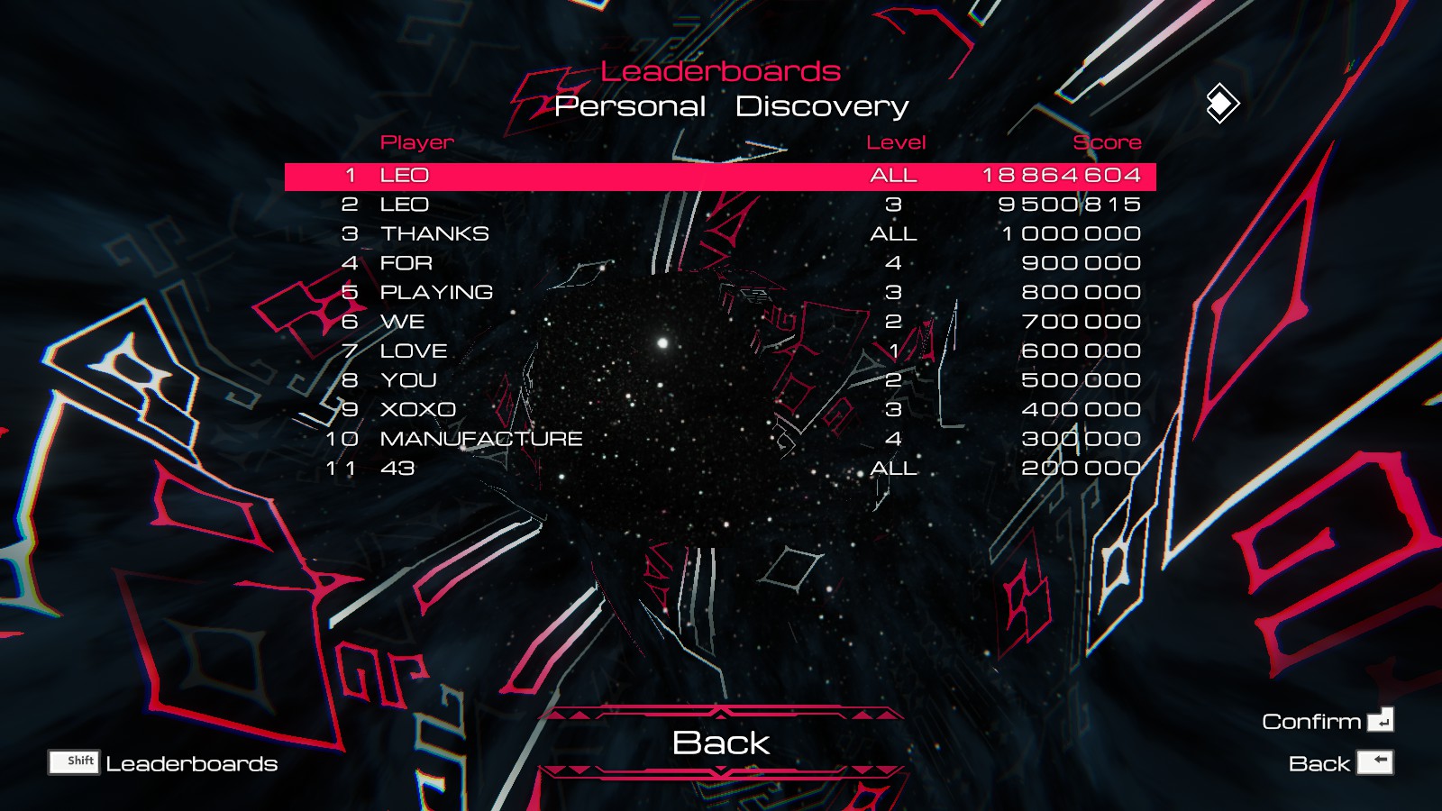 ★ 0Special clears (cleared all loops, optional TLB, etc) Total score 17,484,929,379 on 18 scoreboards across 16 games.